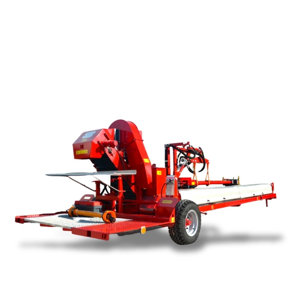 Fructele sunt direcționate rapid către containere de 500 kg sau către lădițe, iar datorită suflantei montate la capătul transportorului, recolta ajunge mai curată, cu mai puține frunze și impurități, ceea ce reduce timpul de sortare și crește calitatea livrării.