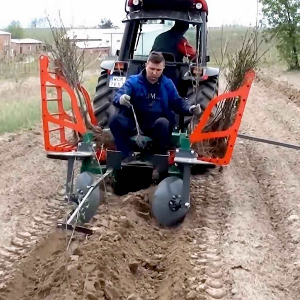 Plantator de copaci și butași MCMS Warka GZ/M + SD este o mașină robustă pentru plantarea copacilor și a butașilor, concepută pentru lucru eficient pe rânduri (livezi, plantații, perdele forestiere). Utilajul lucrează cu brazdar/coulter de 350 mm și poate ajunge la adâncime maximă de 460 mm, oferind o brazdă stabilă și controlată.