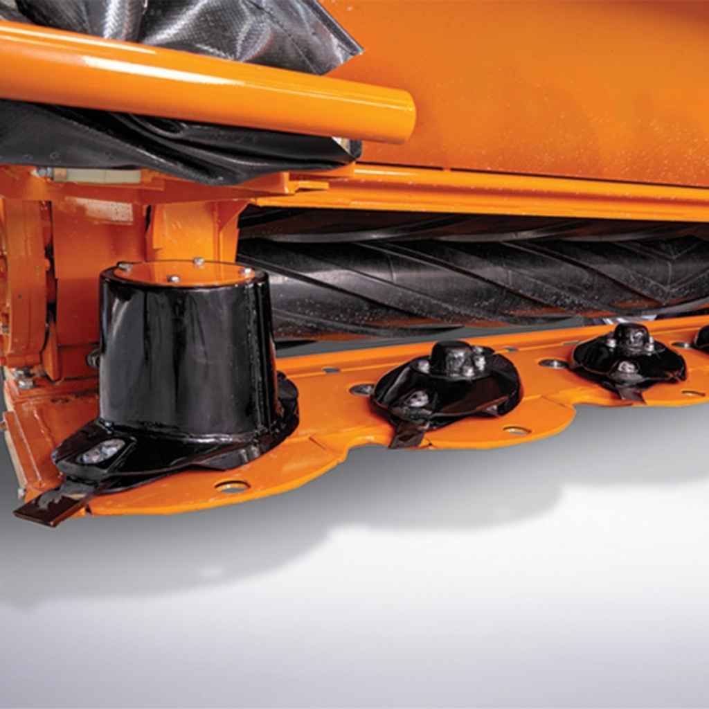 KE 320 este construită pentru utilizare intensivă: discuri robuste, cuțite KE și un sistem care respinge impuritățile/obiectele străine în timpul lucrului, reducând riscul de avarii. Fiecare disc are sistem de siguranță pentru protecție suplimentară.