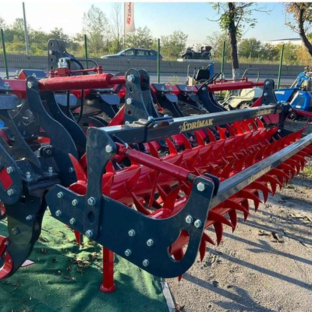 Scarificator Adrimak KVC-5 / KVC-7 este conceput pentru afânarea solului în profunzime (până la 55 cm) și eliminarea compactării. Echipat cu dublu tăvălug (roller) pentru nivelare, asigură un pat de lucru mai uniform și o structură de sol mai aerată, ideal pentru culturi de câmp și plantații perene 🌱.